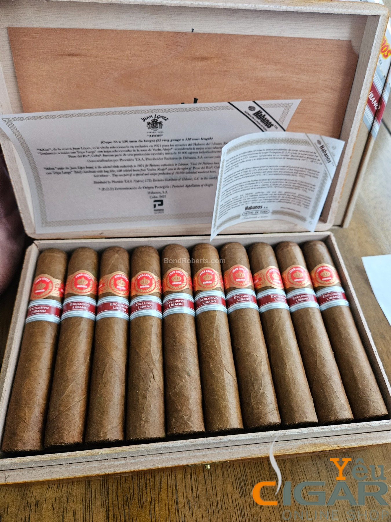 Juan Lopez Adon Edición Regional Líbano là một trong những phiên bản giới hạn hiếm hoi thuộc dòng Edición Regional của Habanos S.A., phát hành độc quyền cho thị trường Lebanon. Dòng cigar này được sản xuất với số lượng rất hạn chế, mang ý nghĩa tôn vinh mối quan hệ hợp tác lâu dài giữa Habanos và nhà phân phối chính thức tại Lebanon – Phoenicia Trading.
