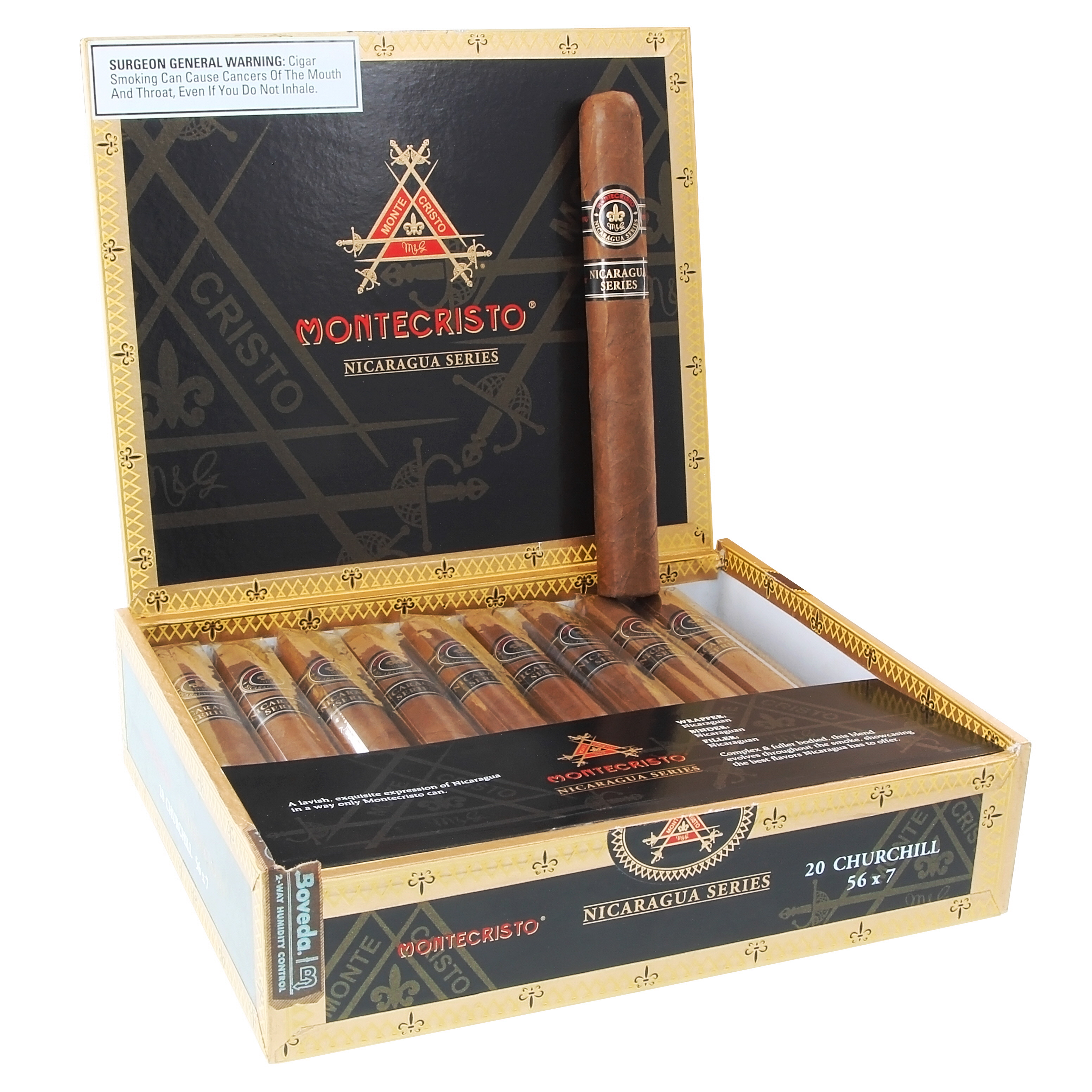 | Montecristo Nicaragua Churchill | Churchill | 7″ × 56 | ~15–19 USD/điếu | Medium–Full | Cà phê, gỗ, tiêu đen, cacao, caramel | Cân bằng giữa phong cách Cuba và Nicaragua, khói dày, mượt |