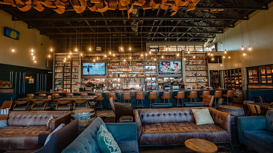 Quán còn có tầng lửng dành cho tiệc riêng, một sân hiên lớn với sofa ngoài trời, giàn pergola, quạt trần và sân bocce, cornhole, putting golf.